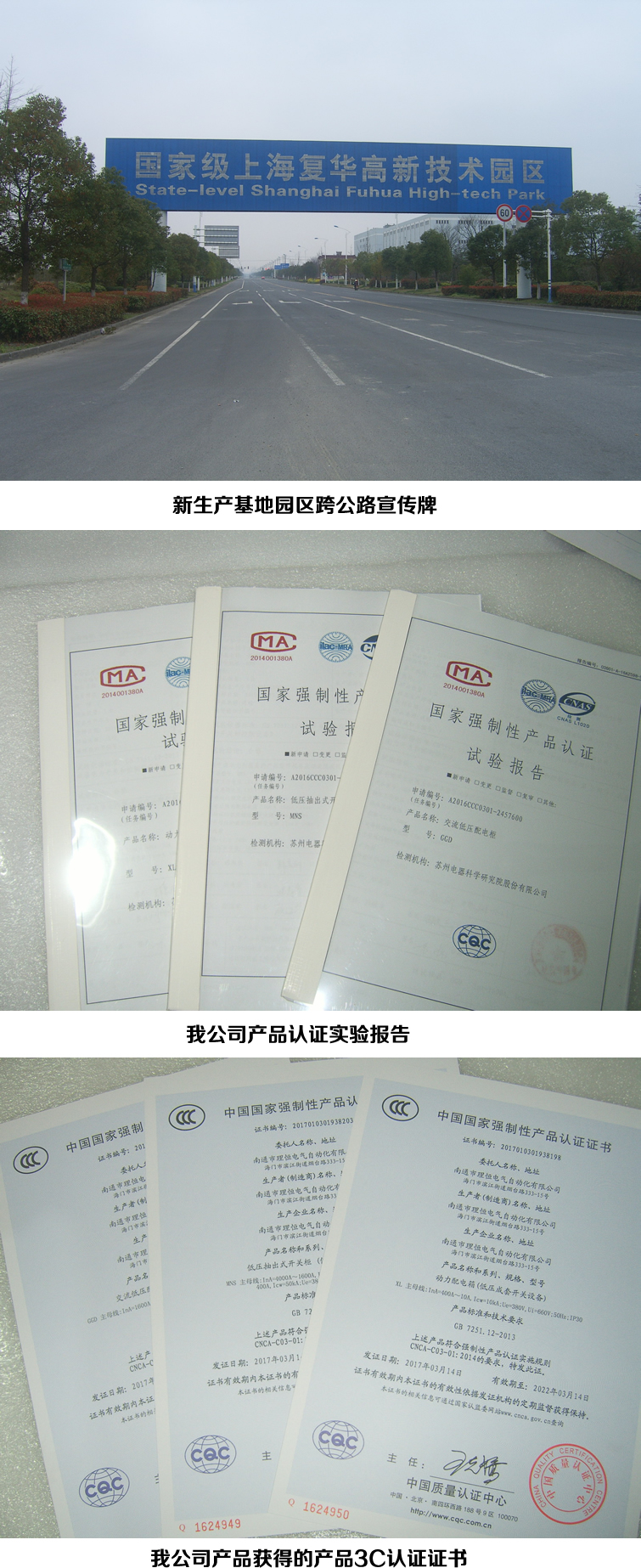 近日:我公司位于蘇通大橋北側的“國家級上海復華高新技術園區(qū)”的新生產(chǎn)基地產(chǎn)品獲得中國質(zhì)量認證中心頒發(fā)的3C認證證書。