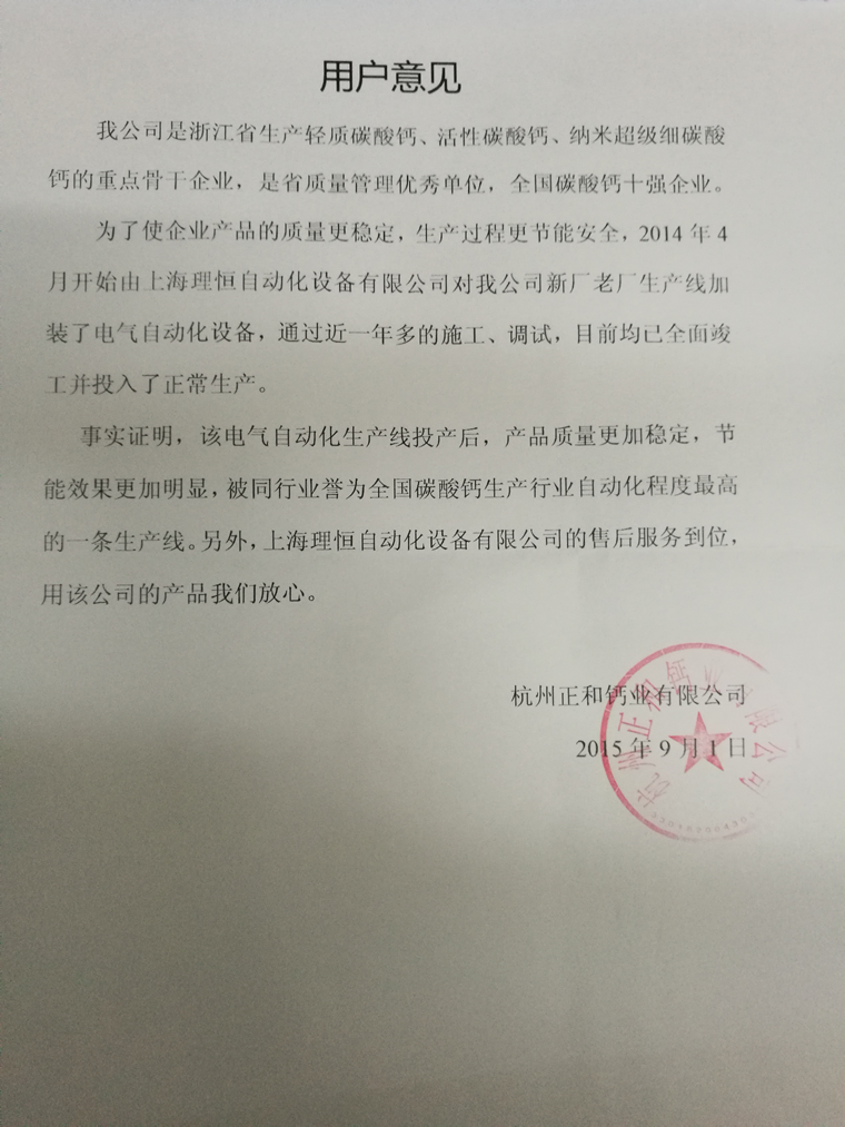 國內(nèi)絕大部分碳酸鈣生產(chǎn)企業(yè)的生產(chǎn)目前都還處于高能耗低產(chǎn)出和嚴(yán)重污染環(huán)境的現(xiàn)狀。理恒電氣自動(dòng)化公司近年為浙江杭州某碳酸鈣生產(chǎn)企業(yè)提供了一套自主知識(shí)產(chǎn)權(quán),年產(chǎn)10萬噸的自動(dòng)化裝置,不但大大穩(wěn)固了生產(chǎn)工藝,全程實(shí)現(xiàn)了自動(dòng)化磨漿生產(chǎn),向除塵環(huán)保生產(chǎn)也邁出了可喜一步,而且明顯降低了勞動(dòng)強(qiáng)度,實(shí)現(xiàn)了資源的綜合利用。目前,由理恒自動(dòng)化公司為該企業(yè)施工的第二條生產(chǎn)線也已投入使用。