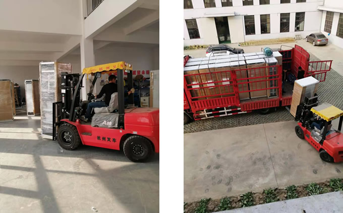 公司員工正在給發(fā)往湖北龍翔制藥的電控柜裝車