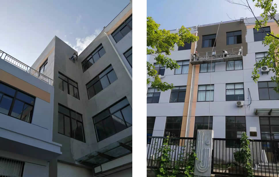 辦公室連廊外墻施工一角